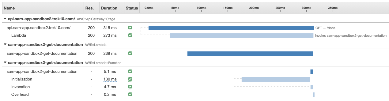 With this basic level of tracing, you’ll be able to see how much a given cold start impacts a request’s performance (see the “Initialization” section of the trace timeline).
