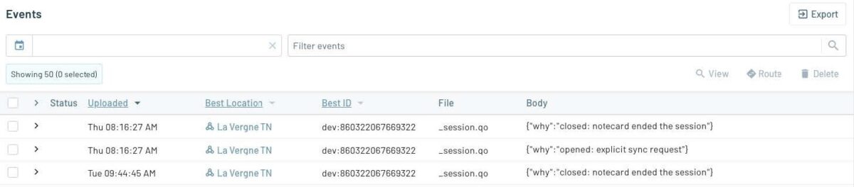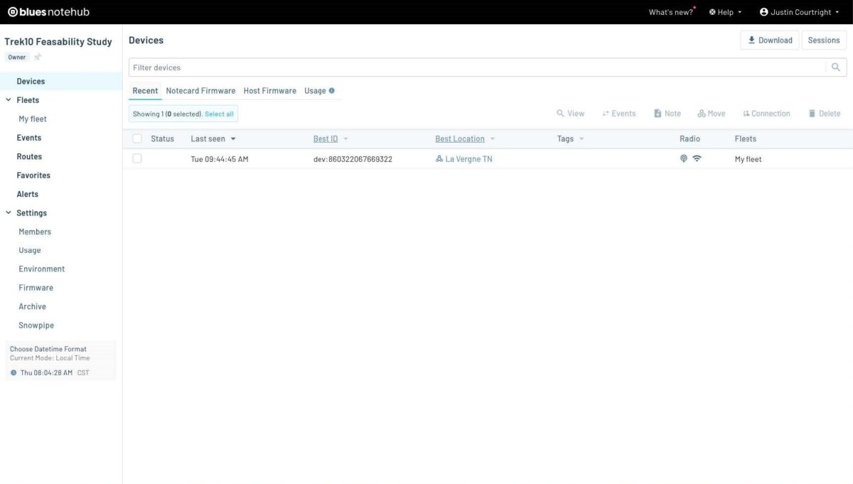 {"req":"hub.sync"}You should now see your device listed in Notehub and the sync event under the Events section: