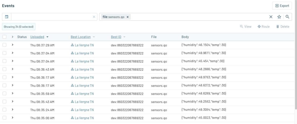 After running this script you should be able to see your published events in the Events section of Notehub: