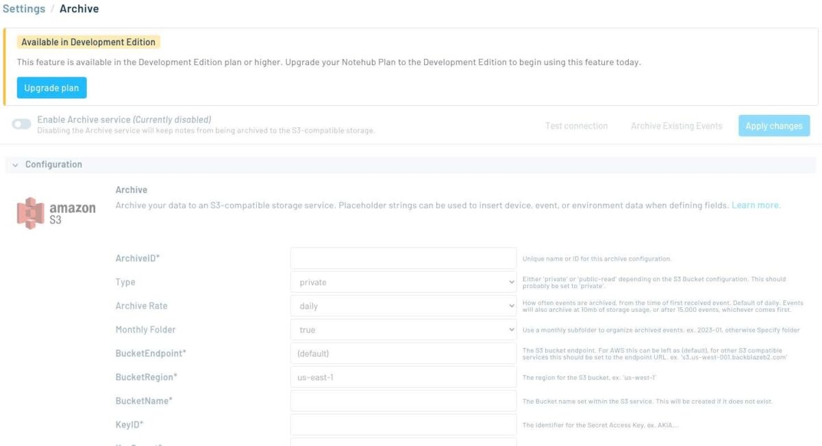 The Notehub platform allows you to manage your fleet of Notecards, view and monitor incoming data, and integrate with 3rd party cloud platforms. Creating a Notehub account is free, and includes 5,000 credits which are used when data is exported from Notehub. Features are limited to data ingestion, OTA management, device environment management, and data routing with the Essentials tier.