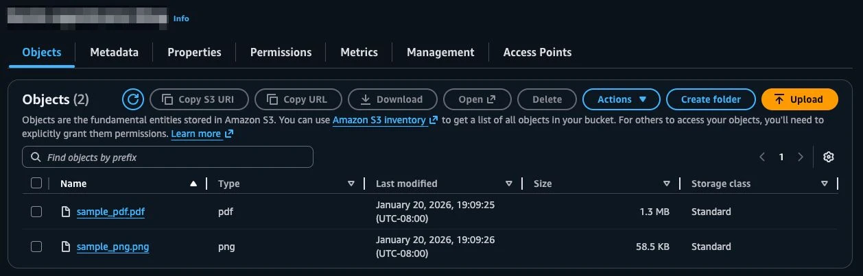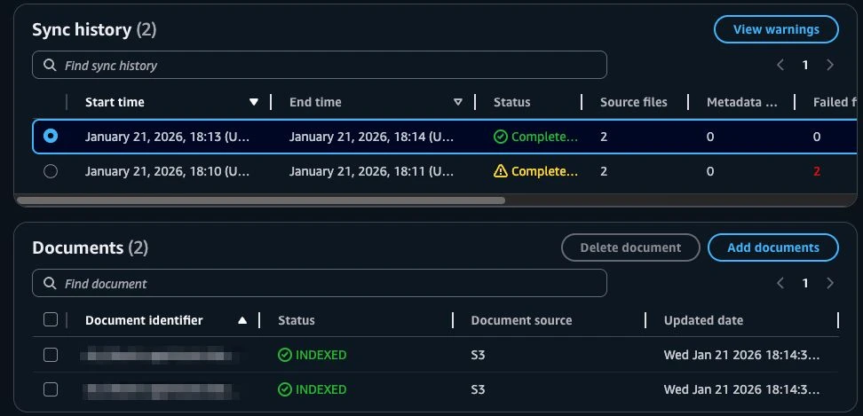 The repository includes two sample documents at kb/. Upload these to an Amazon S3 bucket, then update terraform.tfvars: