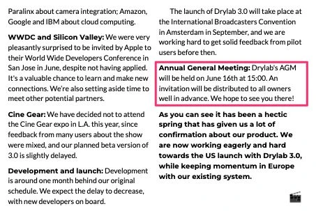 Now let’s ask a question about what’s in the knowledge base, about Drylab News, and their next AGM.