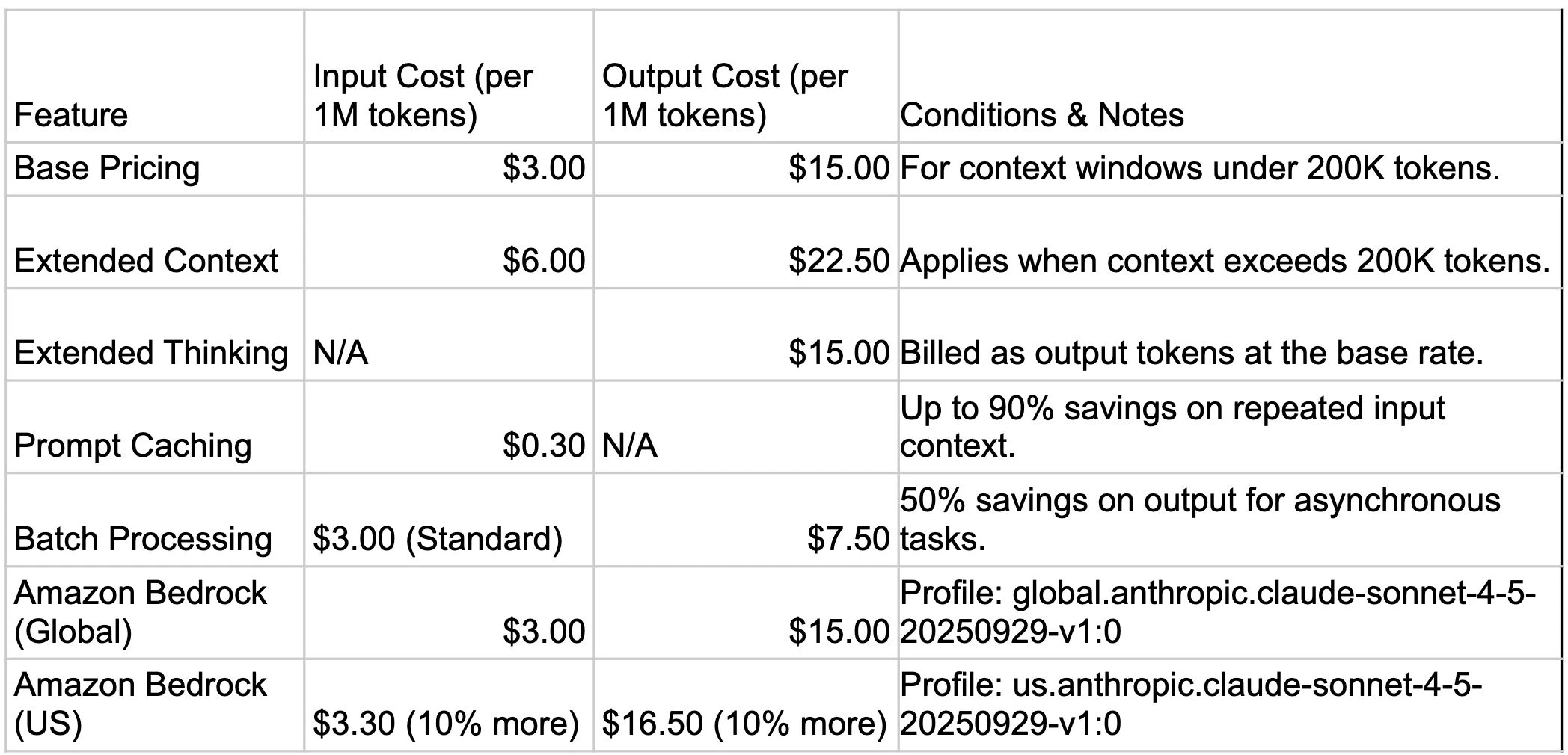 Sonnet 4.5 Detailed Pricing