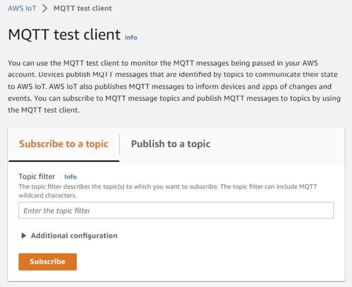 With this understanding, we’ll start this journey by learning how to write to an IoT topic using the AWS web console.