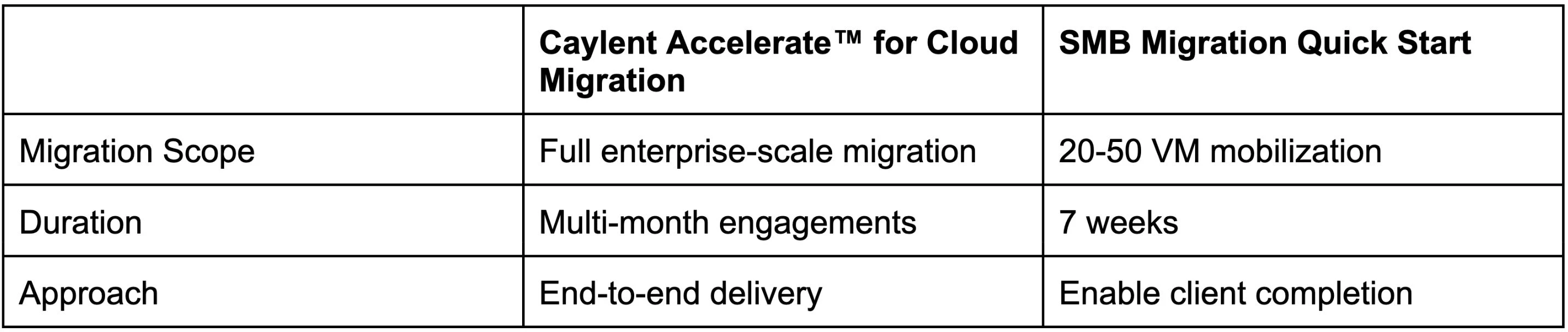 SMB Migration Quick Start focuses on speed and enablement for smaller environments and customers with the technical capability to carry forward the offer, addressing the unique needs of SMBs who want more control over their migration journey.