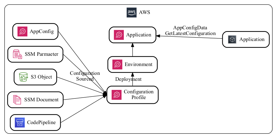 Before you can deploy configurations, you need to define a ConfigurationProfile. Configuration for a ConfigurationProfile can be sourced from several other AWS services:
